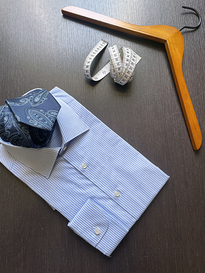 Riga Asimmetrica caratterizzata da un rapporto di 2 a 1 ovvero 2 millimetri di Azzurro ed 1 di Bianco realizzata con un Puro Cotone trama Popeline Doppio Ritorto Super 120’S da 165 grammi particolarmente fine e quindi indicato per essere indossato in ogni stagione dell’anno. Il campione fotografico della Camicia é stato realizzato nella variante di collo Napoli 728 e polso stondato ma, poiché la Camicia verrà realizzata solo su ordinazione, sarà possibile scegliere tra ben 18 modelli di collo ed 8 modelli di Polso (basta scaricare il PDF presente nel nostro sito); naturalmente, sarà possibile segnalare eventuali varianti stilistiche (Taschino laterale…) o di misurazione (ad esempio: lunghezza più corta o addirittura su misura) senza alcun aggravio di costo.Qualora si desideri una Camicia su misura, basta fornire le misure richieste seguendo le semplici istruzioni presenti nello stesso PDF. Per prenotare la Camicia, basta inserire il prodotto nel carrello dopodichè l’ordine verrà perfezionato una volta stabilite le caratteristiche preferite.