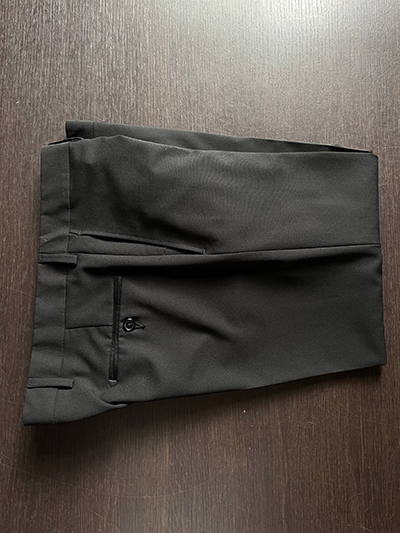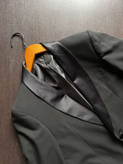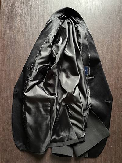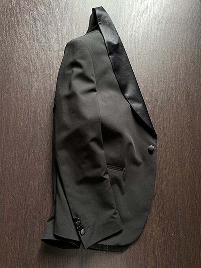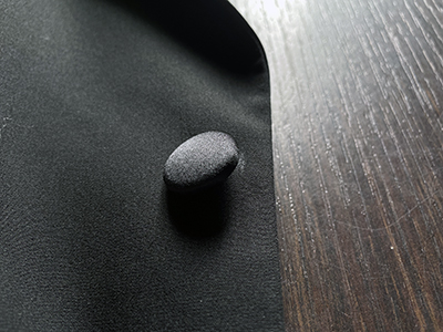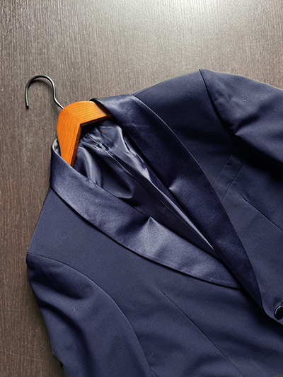 Modello: Revers sciallato; monopetto ad un bottone; tasche a filetto; 2 spacchi laterali; 2 tasche interne; bottoni in raso; Pantalone Senza pinces tasca classica; fondo da 18 cm;
