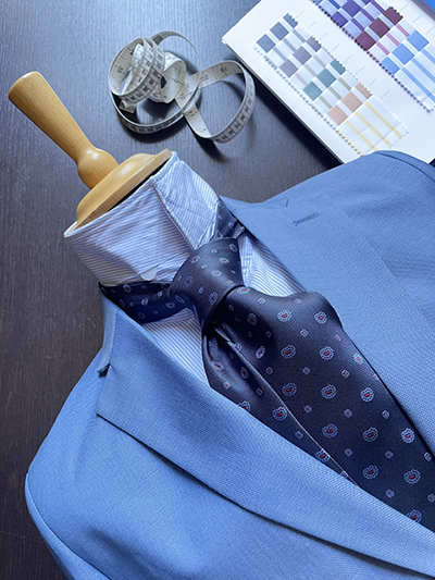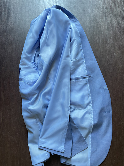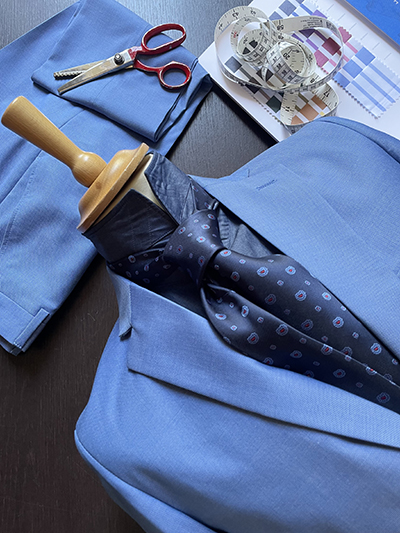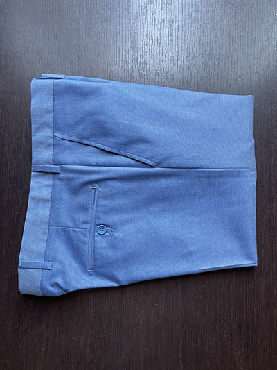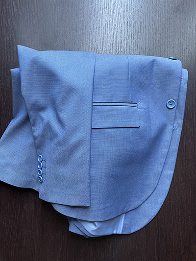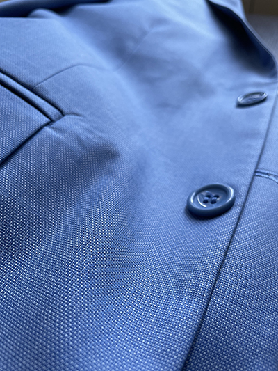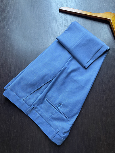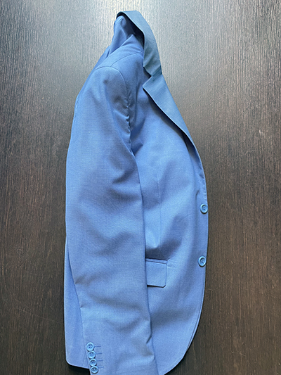 Giacca: 2 Bottoni foderato; 2 spacchi laterali; 2 tasche con pattina; Pantalone: Senza Pinces con tasca classica; fondo da 18 cm