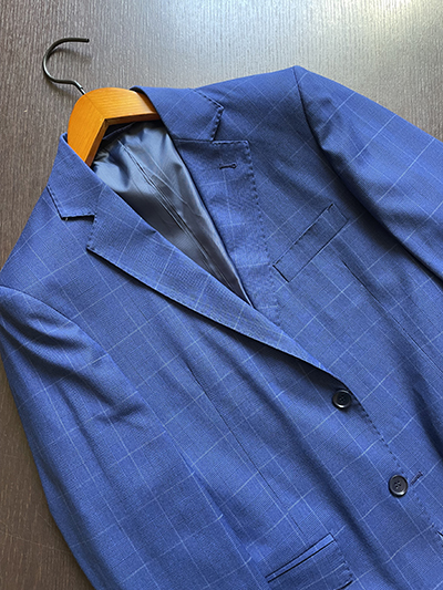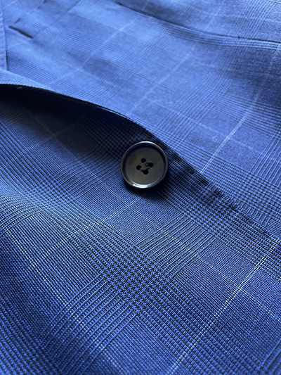 La griglia della trama Principe di Galles è sempre una certezza per una eleganza che in questo caso abbiamo interpretato in chiave sportiva grazie ad una tonalità Blu Cobalto mentre il tessuto è una Microfibra elasticizzata che replica la mano e la consistenza della Tasmania e che pertanto potrà essere tranquillamente indossata per tutta la calda stagione. Il modello della Giacca è un 2 Bottoni foderato con tasche a pattina e spacchi laterali mentre il Pantalone è il senza pinces con tasca classica e fondo da 18 centimetri. L’Abito é disponibile per la spedizione immediata in un solo esemplare per taglia dalla 48 alla 56.