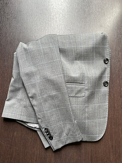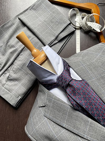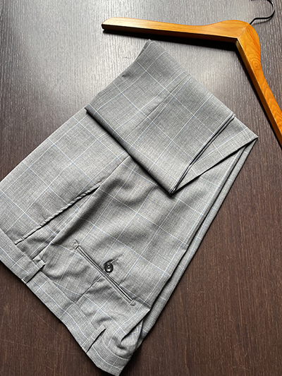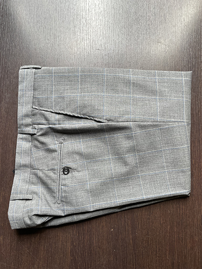 Modello: Giacca 2 Bottoni foderato; 2 spacchi laterali; 2 tasche con pattina; Pantalone Senza Pinces  con tasca classica; fondo da 18 cm