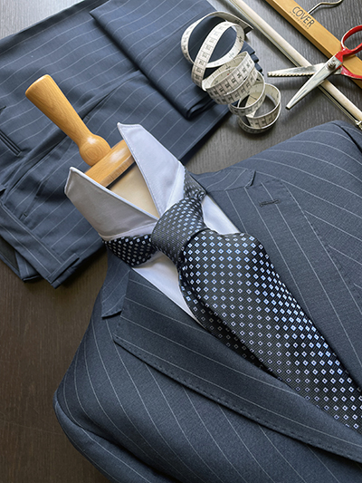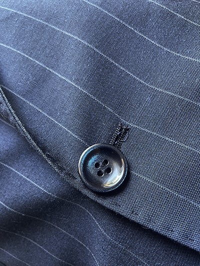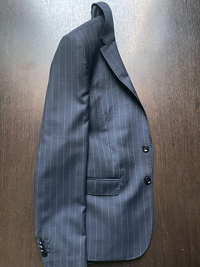 Modello: 2 Bottoni foderato; 2 spacchi laterali; 2 tasche con pattina; asole aperte alle maniche; Pantalone senza pinces e fondo da 18/22 cm