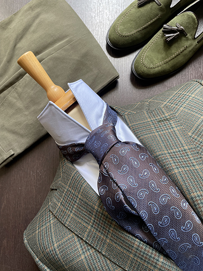 Oggi presentiamo un capo prezioso la cui qualità deriva dal tessuto Saxony ovvero una Lana pettinata estremamente morbida caratterizzata dal tipico disegno Principe di Galles con cui abbiamo realizzato uno stupendo Blazer dalle tonalità del sottobosco ove predomina il colore Muschio in connubio con Ruggine e Bordeaux. Il Blazer é realizzato nel modello 2 Bottoni con interno foderato, tasche con pattina e spacchi laterali con misure dalla 50 alla 60 nel Drop 6 Regolare in un solo esemplare per taglia.