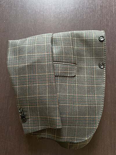 Modello: 2 Bottoni foderato; 2 spacchi laterali; tasche con pattina;