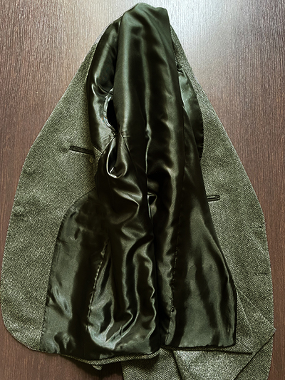 Modello: 2 Bottoni foderato; 2 spacchi laterali; 2 tasche con pattina;