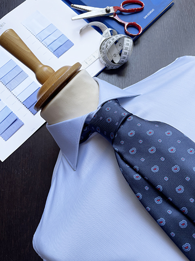 Il nostro laboratorio sartoriale dedicato alle Camicie su misura sarà nuovamente operativo dal 12 gennaio 2026 e mentre le nostre sarte si godono il meritato riposo noi ne approfittiamo per iniziare il nuovo anno con il piede giusto sia per noi che per i nostri Clienti! Ecco quindi un nuovo BOX composto dalla Camicia in Cotone e Micro Tencel corredata da due nostri importanti REGALI ovvero un Pantalone abbinato e le Cifre ricamate!  Per prima cosa, vale la pena spendere due parole sul Micro Tencel che, insieme al Cotone, costituisce la miscela di tale tessuto: si tratta infatti di una fibra di legno naturale, estratta dalla cellulosa del legno di Eucalipto che viene elaborata con un sistema a circuito chiuso riconosciuto dall’Unione Europea come altamente ecosostenibile; i tessuti realizzati con questa miscela ottimale, risultano stabili, resistenti, morbidi, setosi con una superficie liscia ed un’eccezionale assorbenza che crea un ambiente favorevole per la pelle umana, attenuando i disturbi cutanei nei soggetti particolarmente sensibili. Si tratta di una fibra altamente performante che nel nostro caso presenta una armatura Twill diagonale che abbiamo declinato nel classici colori del Bianco e Celeste. Le caratteristiche del tessuto, unitamente ad un Titolo 100 in Doppio ritorto ed un peso di 189 grammi al metro lineare ne fanno un perfetto four seasons che noi abbiamo interpretato con il modello di collo Francese 588 e polso stondato lasciando la libertà (poiché la Camicia viene realizzata su ordinazione) di scegliere tra i ben 18 modelli di collo ed 8 modelli di Polso (basta scaricare il PDF presente nel nostro sito). La Camicia é realizzata solo su prenotazione, e pertanto sarà possibile segnalare eventuali varianti stilistiche (Taschino laterale…) o di misurazione (ad esempio: lunghezza più corta o addirittura su misura) senza alcun aggravio di costo. Qualora si desideri una Camicia su misura, basta fornire le misure richieste seguendo le semplici istruzioni presenti nel nostro sito. Per quanto riguarda il Pantalone, verrà abbinato a nostra cura nel modello classico senza pinces, tasca classica con vestibilità regolare e misure dalla 44 alla 64 (segnalare la propria misura nel campo dedicato alla Personalizzazione).