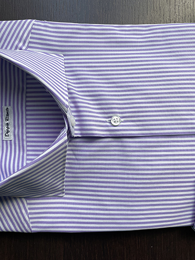 Il nostro laboratorio sartoriale dedicato alle Camicie su misura sarà nuovamente operativo dal 12 gennaio 2026 e mentre le nostre sarte si godono il meritato riposo noi ne approfittiamo per iniziare il nuovo anno con il piede giusto sia per noi che per i nostri Clienti! Ecco quindi un nuovo BOX composto dalla Camicia Popeline Savoy a Righe Ciclamino corredata da due nostri importanti REGALI ovvero un Pantalone abbinato e le Cifre ricamate! Si tratta di un tessuto dal Titolo Super 120’S sinonimo di finezza che presenta una armatura Popeline che, congiuntamente ai 162 grammi al metro lineare, ci regala una Camicia perfetta per ogni stagione dell’anno. Il nostro campione fotografico é stato realizzato con il collo Francese 588 e polso stondato ma, poiché la Camicia viene realizzata su ordinazione, si potrà scegliere tra i ben 18 modelli di collo ed 8 modelli di Polso (basta scaricare il PDF presente nel nostro sito). La Camicia é realizzata solo su prenotazione, e pertanto sarà possibile segnalare eventuali varianti stilistiche (Taschino laterale…) o di misurazione (ad esempio: lunghezza più corta o addirittura su misura) senza alcun aggravio di costo. Qualora si desideri una Camicia su misura, basta fornire le misure richieste seguendo le semplici istruzioni presenti nel nostro sito. Per quanto riguarda il Pantalone, verrà abbinato a nostra cura nel modello classico senza pinces, tasca classica con vestibilità regolare e misure dalla 44 alla 64 (segnalare la propria misura nel campo dedicato alla Personalizzazione).
