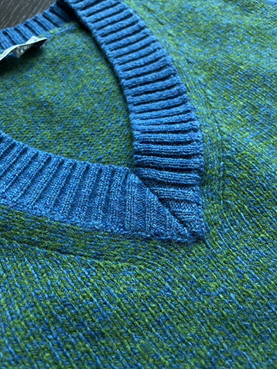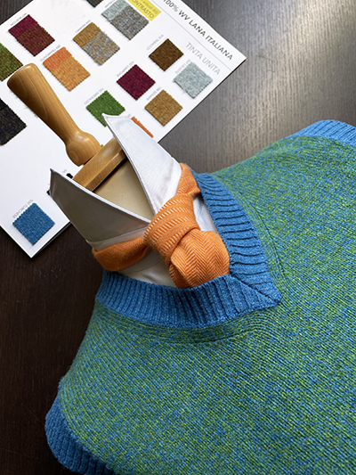 È tempo di dare un’occhiata alla personale dotazione di Pullover e niente di meglio di una pregiata Pura Lana Extrafine Shetland da interpretare con un modello Gilet. La materia prima é italiana, una Pura Lana Merino Extrafine targata Filati Biagioli Modesto, ma l’ispirazione é prettamente anglosassone e si richiama ai tipici Pullover in Shetland caratterizzati da un effetto melange che noi abbiamo interpretato con un Verde Mare ed Azzurro a contrasto sulla manica ed il collo. Le misure vanno dalla 48 alla 56 in un solo esemplare per taglia al prezzo di 98,00 euro per consegna dal 20 settembre.