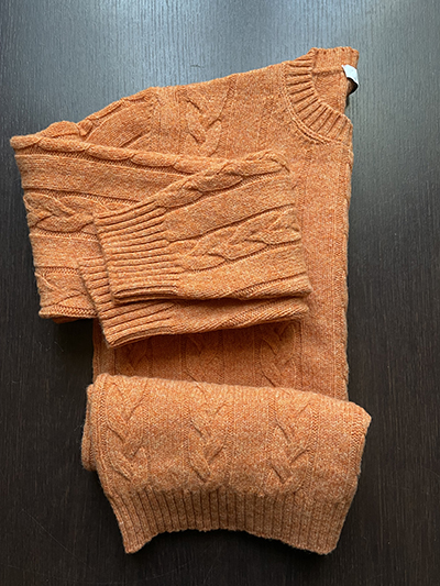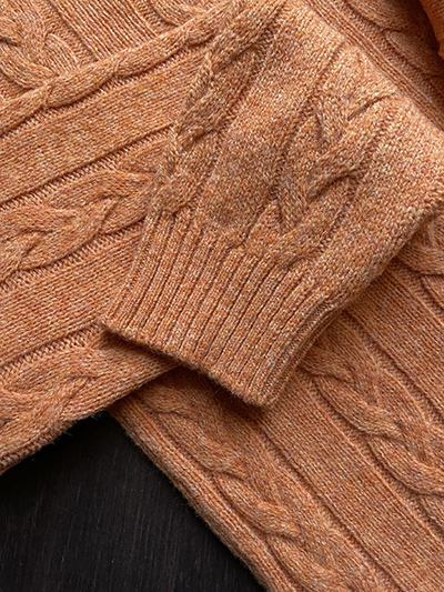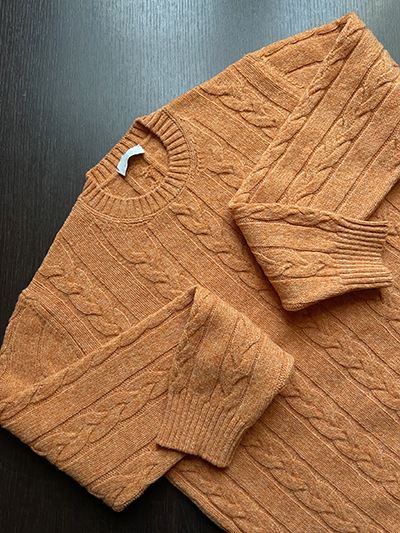 Il modello Girocollo a treccia Aran: un modello iconico che ha origini antichissime quando nelle Isole Aran, un arcipelago roccioso dell’Irlanda occidentale, il maglione dalle spesse lavorazioni diventa un capo indispensabile del guardaroba di marinai e pescatori che cercano in lui la giusta protezione da un clima ostile sfruttando le caratteristiche idrorepellenti e isolanti della lana naturale con l’aggiunta del vezzo ornamentale della treccia che simula la corda dei pescatori. Noi lo abbiamo piegato alle nostre esigenze urbane utilizzando la morbida Pura Lana Merino Extrafine targata Filati Biagioli Modesto declinata nel colore Aragosta.