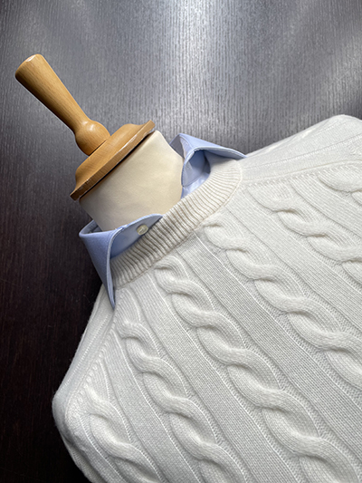 Il nuovo colore del nostro Girocollo Fisherman a Treccia finezza 7 è l’elegante Ghiaccio 606 che possiamo definire una sorta di Bianco sporco dal tono quindi meno luminescente rispetto al Bianco. L’appellativo Fisherman ci dice che il Pullover è caratterizzato dalla tipica trama a Treccia il cui disegno non è altro che la stilizzazione delle corde dei pescatori da cui origina tale modello di indubbio fascino. Noi lo abbiamo interpretato con un morbido tessuto in Misto Lana con la lavorazione in Finezza 7 che dona la necessaria corposità. Il Girocollo Fisherman è disponibile in un solo esemplare per taglia dalla 46 alla 56.
