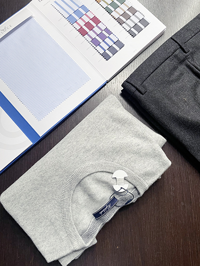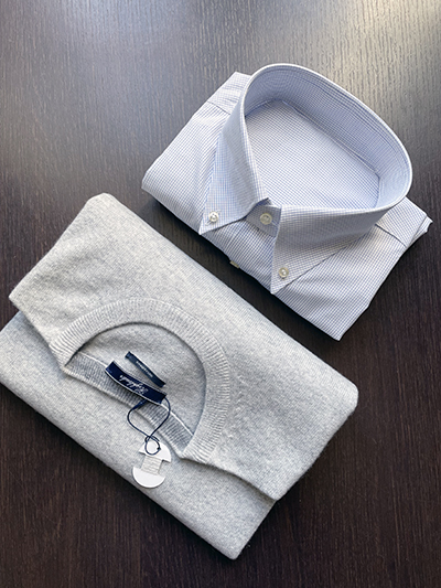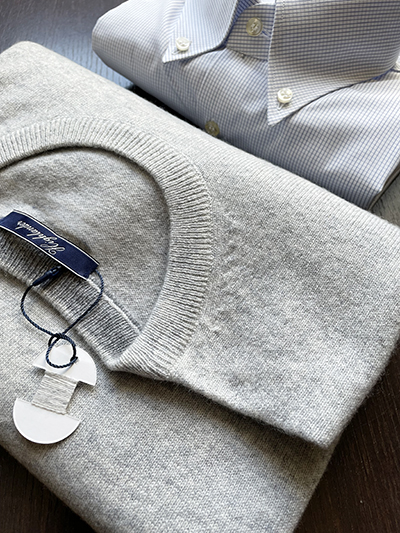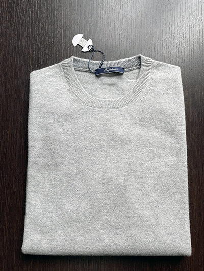 Ancora una declinazione del nostro Girocollo in Lana & Cashmere Finezza 12 che prende i toni di un Grigio Chiaro di assoluta sobrietà ed eleganza, perfetto per sposare il Blu ed il Grigio del Pantalone. Ricordiamo che, sebbene la presenza del Cashmere sia limitata ad un solo 10%, ciò è sufficiente a rendere il capo estremamente morbido e con tutte le eccelse proprietà termiche di tali fibre naturali specie quando quel 10% è un filato Loro Piana. La lavorazione in finezza 12 ci consente di disporre di un capo estremamente fine, ideale anche quale sottogiacca. Il Girocollo é disponibile in un solo esemplare per taglia dalla 46 alla 58.