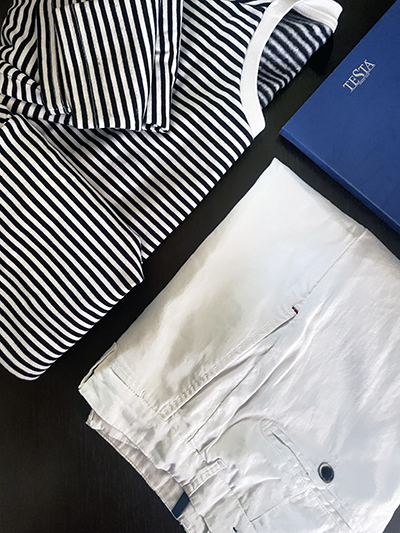 Le temperature ci stanno fornendo un sostanzioso assaggio di estate e quindi l’odierna proposta della serie Destini Incrociati vede protagonisti due capi perfetti in tale ottica: il Girocollo Royal Marine a Righe Blu Notte & il Pantalone Bianco in misto Lino che potranno essere ordinati congiuntamente al prezzo di 90,00 euro anziché 130,00 euro!