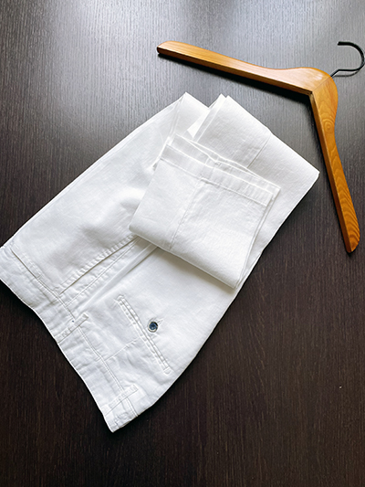 Tessuto: Lino 52 %, Cotone 47%, Elastan 1%
