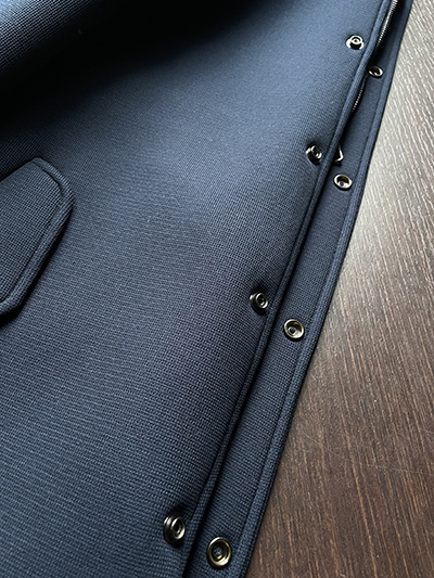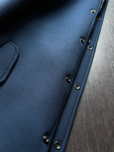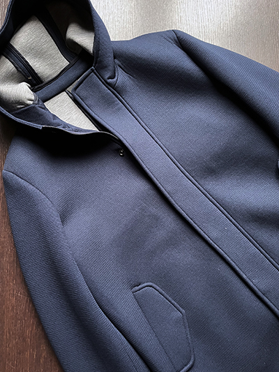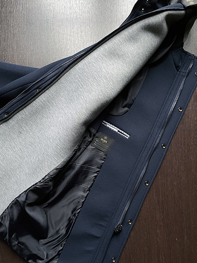 Modello: Montgomery con cappuccio; chiusura con zip ed automatici; due tasche esterne con pattina; due tasche interne;