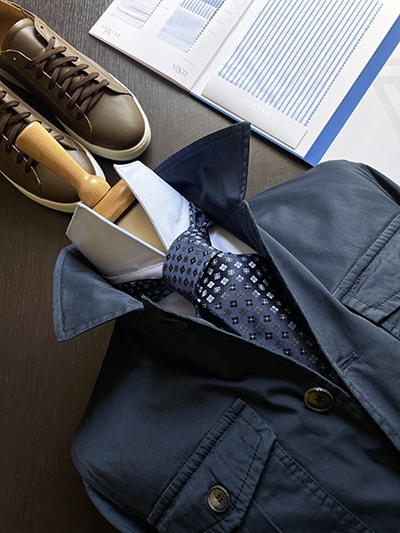 Modello: Sahariana 5 Bottoni; 4 tasche esterne a soffietto; 2 tasche interne; Interno sfoderato; pattina alle maniche;